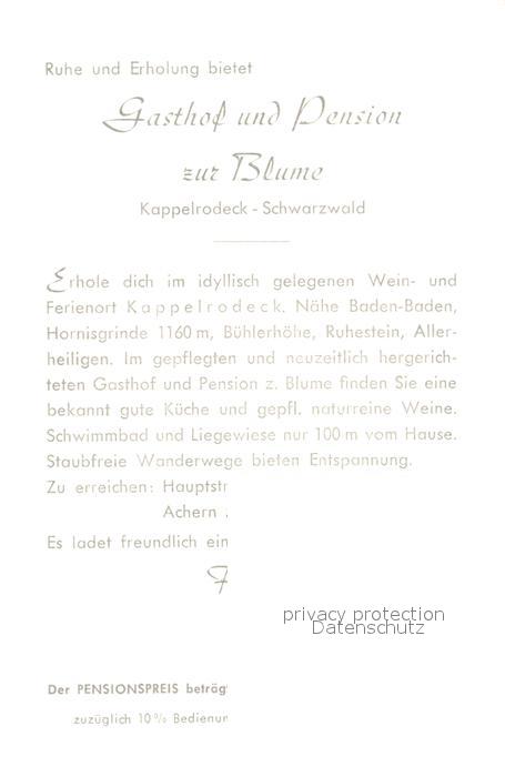 73615397 Kappelrodeck Gasthof Pension zur Blume Schwimmbad postalisch nicht gelaufen Erhaltung siehe scans [WerneD78] KatCode: 11110008317056