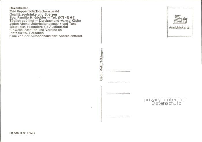 71830909 Kappelrodeck Hexenkeller postalisch nicht gelaufen Erhaltung siehe scans KatCode: 11110008317056