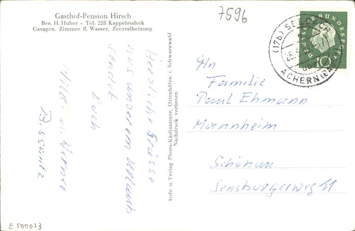 41210247 Kappelrodeck Pension Hirsch postalisch gelaufen gute Erhaltung Alte Ansichtskarte Postkarte alte Postkarte hz_U Katcode 11110008317056