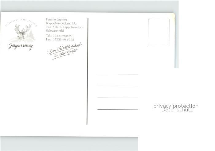 72473309 Kappelwindeck Restaurant Jaegersteig postalisch nicht gelaufen Erhaltung siehe scans KatCode: 11110008216007