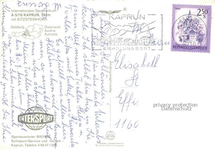 74025857 alte Postkarte Kaprun AT Panorama Internationales Sportzentrum mit Kitzsteinhorn Hohe Tauern postalisch gelaufen Fliegeraufnahme Erhaltung siehe scans [FriedD77] KatCode: 11390322050606