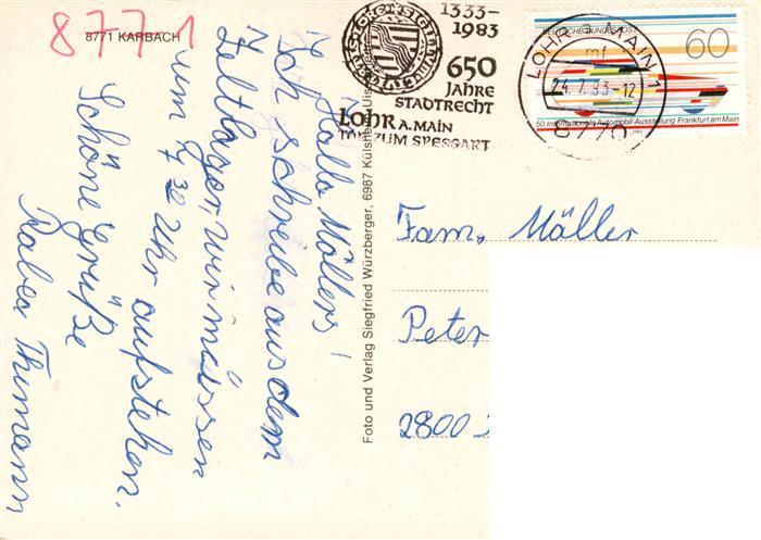 73915047 alte Postkarte Karbach Fachwerkhaus Panorama Kreissparkasse postalisch gelaufen Erhaltung siehe scans [FriedD77] KatCode: 11110008436006