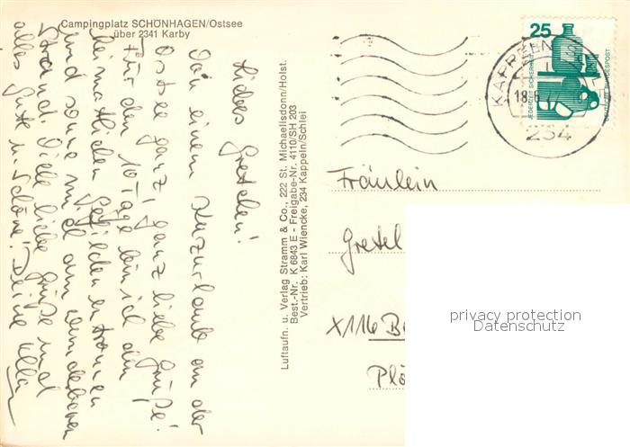 73629403 alte Postkarte Karby Schwansen Campingplatz Schoenhagen Fliegeraufnahme postalisch gelaufen Erhaltung siehe scans [FriedD77] KatCode: 11110001058087