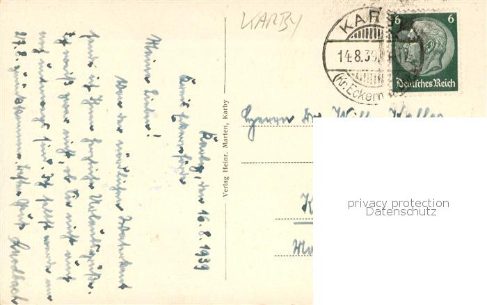 73770583 alte Postkarte Karby Schwansen Pastorat postalisch gelaufen Erhaltung siehe scans [FriedD77] KatCode: 11110001058087