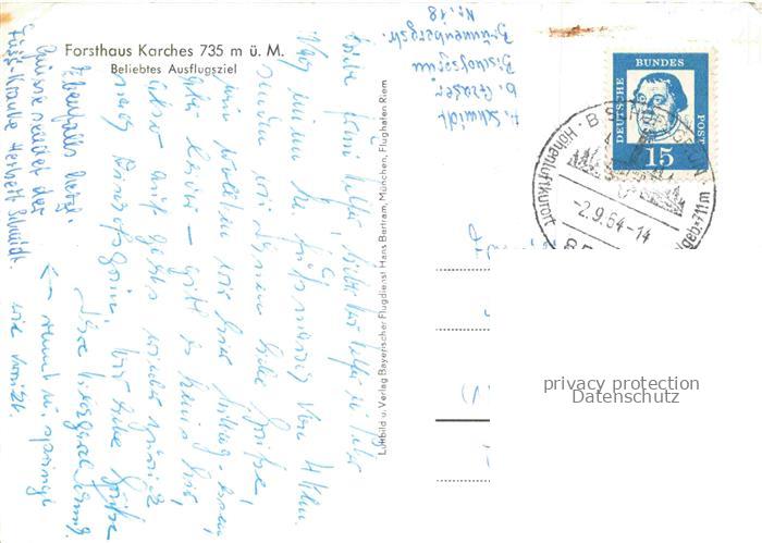 74040054 alte Postkarte Karches Bischofsgruen Bayern Forsthaus Ausflugsziel am See postalisch gelaufen Fliegeraufnahme Erhaltung siehe scans [FriedD77] KatCode: 11110009472121