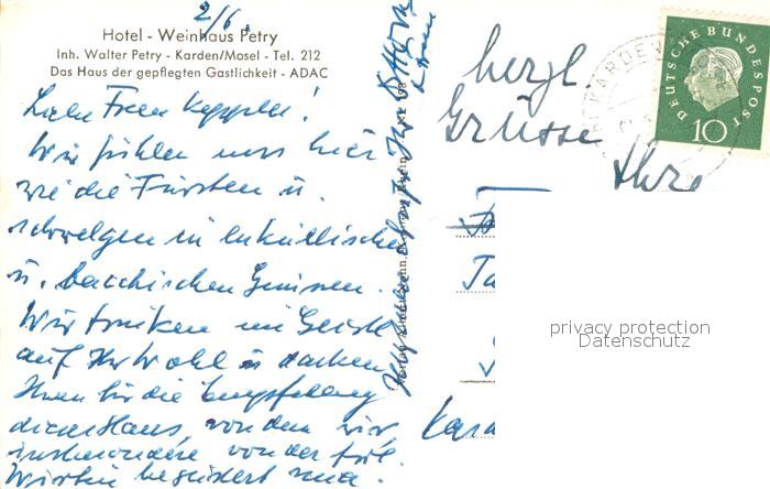 73641372 alte Postkarte Karden Stadtpanorama mit Kirche Moseltal Weinberge postalisch gelaufen Erhaltung siehe scans [FriedD77] KatCode: 11110007135082