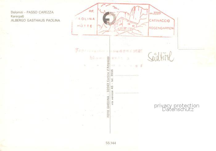 73166779 Karerpass Suedtirol Gasthaus Paolina postalisch nicht gelaufen Erhaltung siehe scans [KathaD81] KatCode: 11390