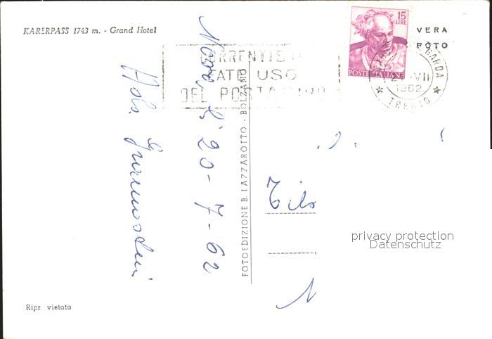72370436 alte Postkarte Karerpass Suedtirol Grand Hotel postalisch gelaufen Erhaltung siehe scans KatCode: 11390
