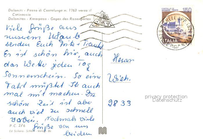 73019214 alte Postkarte Karerpass Suedtirol mit Rosengarten postalisch gelaufen Erhaltung siehe scans [WerneD78] KatCode: 11390