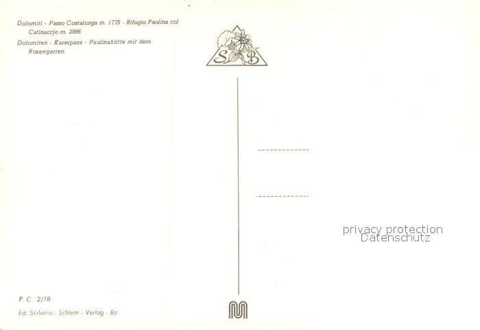73712119 Karerpass Suedtirol Paulinahuette mit dem Rosengarten postalisch nicht gelaufen Erhaltung siehe scans [WerneD78] KatCode: 11390