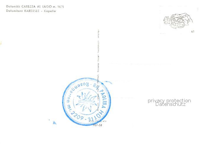 73317196 Karersee Suedtirol Kapelle Carezza al Lago postalisch nicht gelaufen Erhaltung siehe scans [LiesaD40] KatCode: 11390