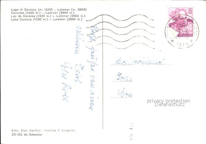 72600333 alte Postkarte Karersee Suedtirol Lago di Carezza Latemar Dolomiten Wasserspiegelung postalisch gelaufen Erhaltung siehe scans [FriedD77] KatCode: 11390