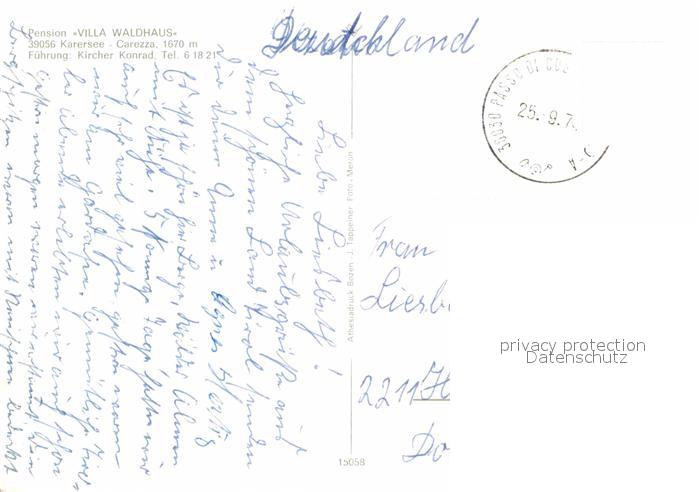 72780935 alte Postkarte Karersee Suedtirol Pension Waldhaus Winterpanorama Dolomiten postalisch gelaufen Erhaltung siehe scans [FriedD77] KatCode: 11390