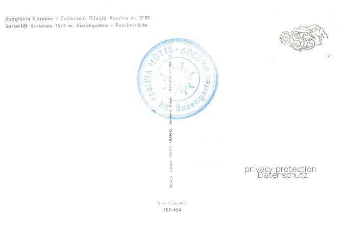 73317195 Karersee Suedtirol Sessellift Rosengarten Paolinahuette postalisch nicht gelaufen Erhaltung siehe scans [LiesaD40] KatCode: 11390