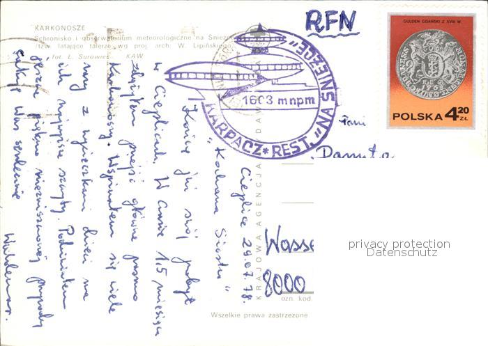 old postcard Karkonosze Observatorium postalisch gelaufen Erhaltung siehe scans [LiesaD40]