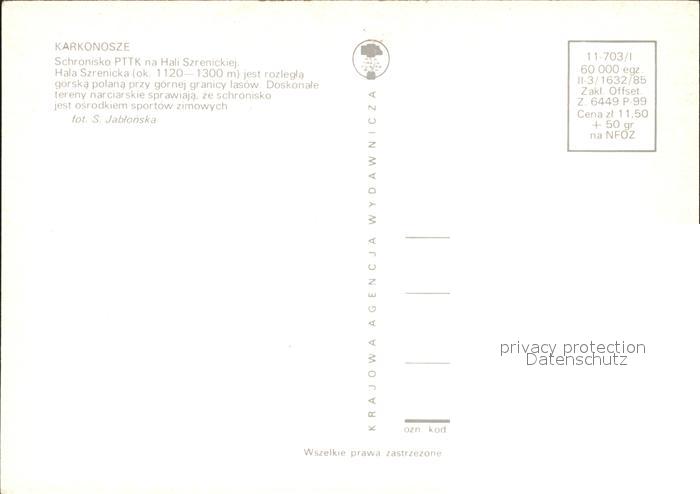 Karkonosze Schronisko PTTK na Hali Szrenickiej postalisch nicht gelaufen Erhaltung siehe scans