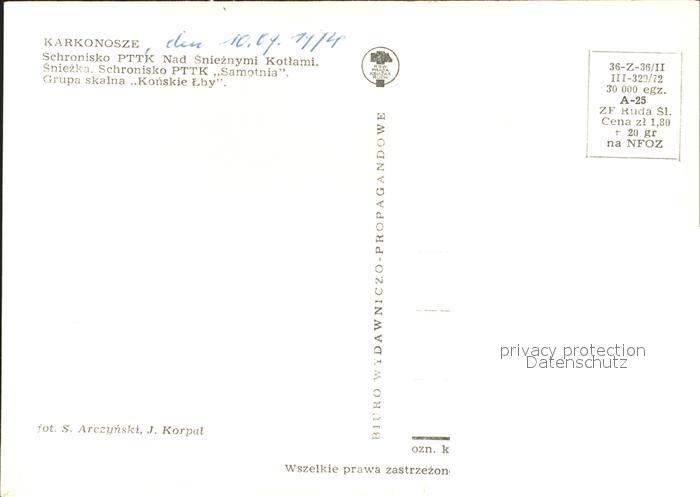 Karkonosze Schronisko PTTK Samotnia postalisch nicht gelaufen Erhaltung siehe scans