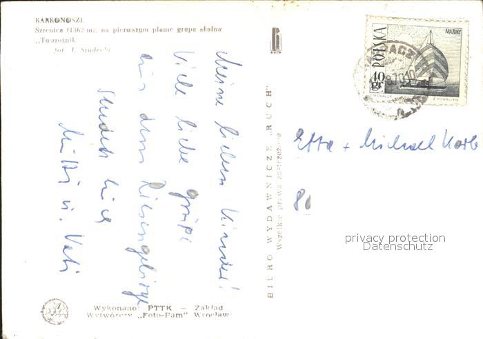 old postcard Karkonosze Szrenica Grupa Skalna Twaroznik postalisch gelaufen Erhaltung siehe scans