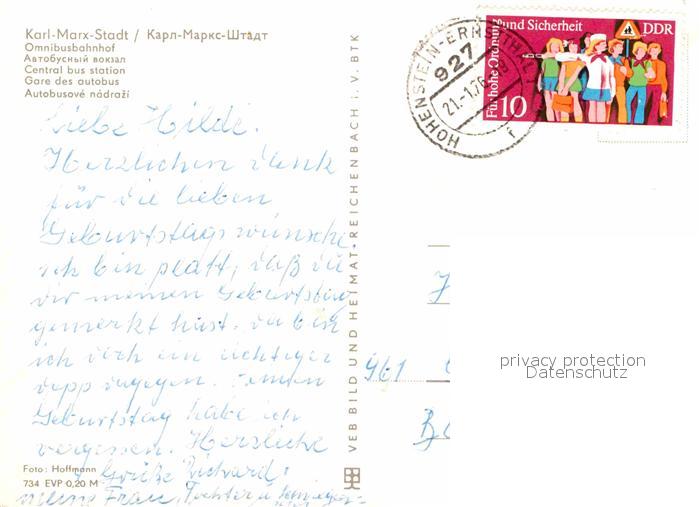 72669116 alte Postkarte Karl-Marx-Stadt Busbahnhof postalisch gelaufen Erhaltung siehe scans [LiesaD40] KatCode: 11110014161000