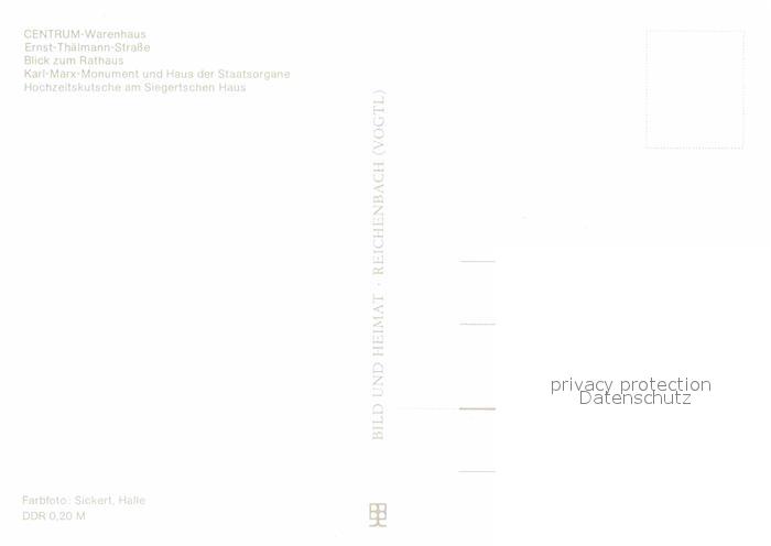 72742898 Karl-Marx-Stadt Centrum Warenhaus Ernst-Thaelmann-Strasse Karl-Marx-Monument Hochzeitskutsche postalisch nicht gelaufen Erhaltung siehe scans [LiesaD40] KatCode: 11110014161000