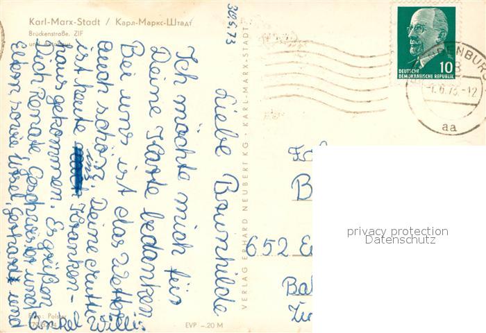 73650006 Karl-Marx-Stadt CHEMNITZ Brueckenstrasse ZIF und Autohaus postalisch gelaufen Erhaltung siehe scans [FriedD77] alte Postkarte Frie Katcode 11110014161000