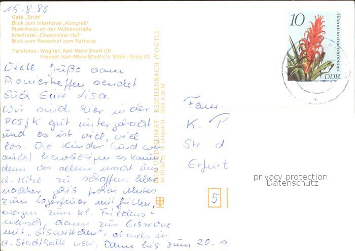 72129984 alte Postkarte Karl-Marx-Stadt CHEMNITZ Cafe Bruehl Interhotel Kongress Muehlenstrasse postalisch gelaufen Erhaltung siehe scans KatCode: 11110014161000