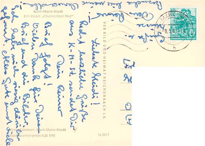 73901863 Karl-Marx-Stadt CHEMNITZ HO Hotel Chemnitzer Hof postalisch gelaufen Erhaltung siehe scans [WerneD78] alte Postkarte Wern Katcode 11110014161000