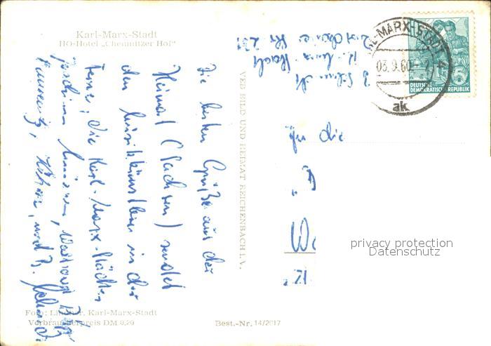 72075025 alte Postkarte Karl-Marx-Stadt CHEMNITZ HO Hotel Chemnitzer Hof postalisch gelaufen KatCode: 11110014161000