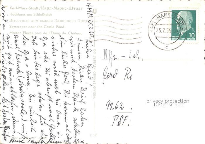 72067124 alte Postkarte Karl-Marx-Stadt CHEMNITZ Hochhaus am Schlossteich postalisch gelaufen Erhaltung siehe scans KatCode: 11110014161000