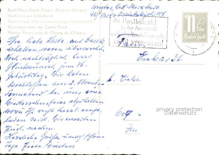 72006347 alte Postkarte Karl-Marx-Stadt CHEMNITZ Hochhaus Schlossteich postalisch gelaufen KatCode: 11110014161000