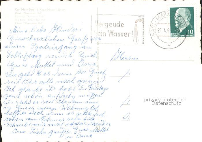 72020413 alte Postkarte Karl-Marx-Stadt CHEMNITZ Hotel Chemnitzer Hof postalisch gelaufen Erhaltung siehe scans KatCode: 11110014161000