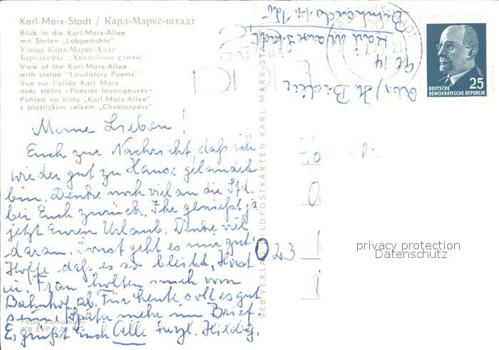 72136748 alte Postkarte Karl-Marx-Stadt CHEMNITZ Karl-Marx-Allee Stelen Lobgedichte postalisch gelaufen KatCode: 11110014161000