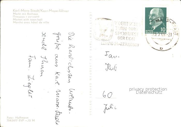 72049567 alte Postkarte Karl-Marx-Stadt CHEMNITZ Markt mit Rathaus postalisch gelaufen Erhaltung siehe scans KatCode: 11110014161000
