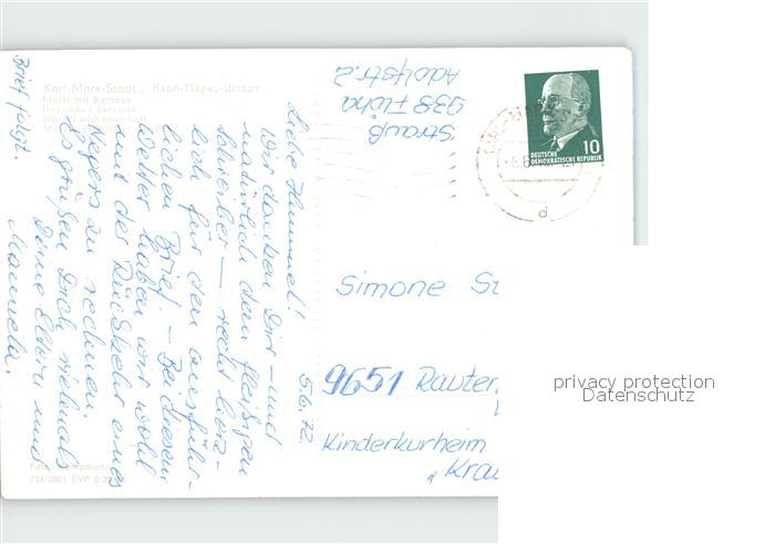 72185013 alte Postkarte Karl-Marx-Stadt CHEMNITZ Markt Rathaus postalisch gelaufen Erhaltung siehe scans KatCode: 11110014161000