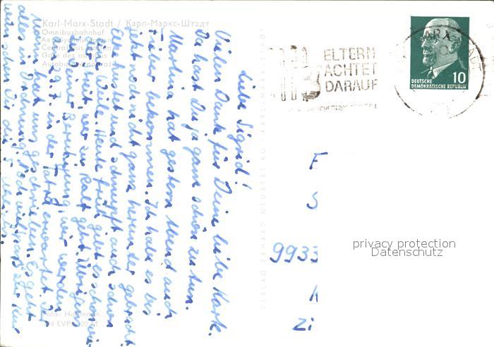 72133060 alte Postkarte Karl-Marx-Stadt CHEMNITZ Omnibusbahnhof postalisch gelaufen Erhaltung siehe scans KatCode: 11110014161000
