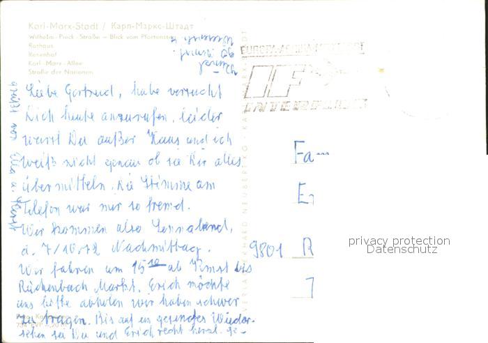 72061782 alte Postkarte Karl-Marx-Stadt CHEMNITZ Rathaus Rosenhof Wilhelm Pieck Strasse postalisch gelaufen Erhaltung siehe scans KatCode: 11110014161000