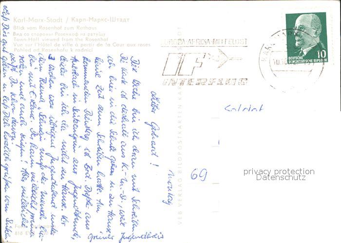 71972821 alte Postkarte Karl-Marx-Stadt CHEMNITZ Rathaus Rosenhof postalisch gelaufen Erhaltung siehe scans KatCode: 11110014161000