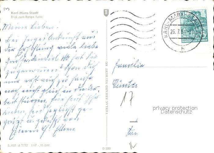 72076858 alte Postkarte Karl-Marx-Stadt CHEMNITZ Rote Turm postalisch gelaufen KatCode: 11110014161000