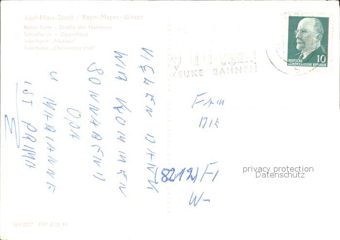 72261084 alte Postkarte Karl-Marx-Stadt CHEMNITZ Roter Turm Strasse der Nationen Schlossteich Opernhaus Interhotel Moskau Chemnitzer Hof postalisch gelaufen Erhaltung siehe scans KatCode: 11110014161000