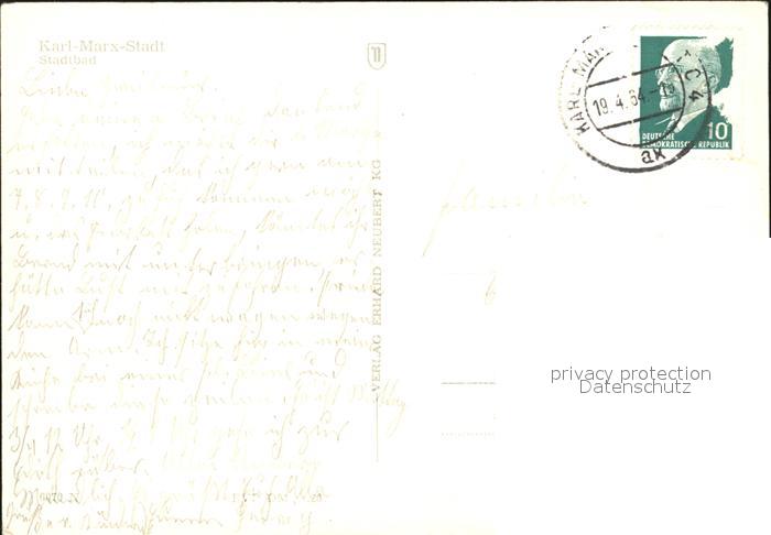 72078998 alte Postkarte Karl-Marx-Stadt CHEMNITZ Stadtbad postalisch gelaufen Erhaltung siehe scans KatCode: 11110014161000