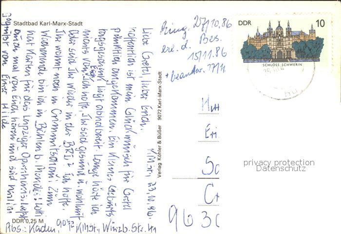 71989679 alte Postkarte Karl-Marx-Stadt CHEMNITZ Stadtbad postalisch gelaufen Erhaltung siehe scans KatCode: 11110014161000