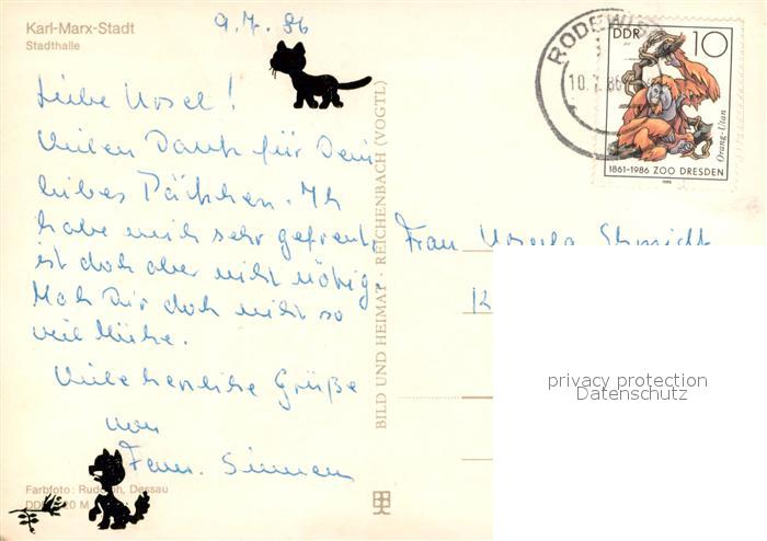 73686862 Karl-Marx-Stadt CHEMNITZ Stadthalle postalisch gelaufen Erhaltung siehe scans [WerneD78] alte Postkarte Wern Katcode 11110014161000
