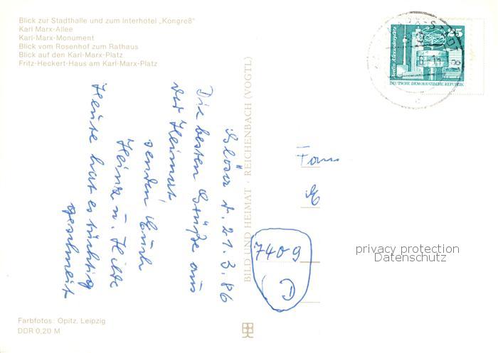 73863570 Karl-Marx-Stadt CHEMNITZ Stadthalle Interhotel Kongress Karl Marx Allee Monument Rosenhof Rathaus Karl Marx Platz Fritz Heckert Haus postalisch gelaufen Erhaltung siehe scans [WerneD78] alte Postkarte Wern Katcode 11110014161000