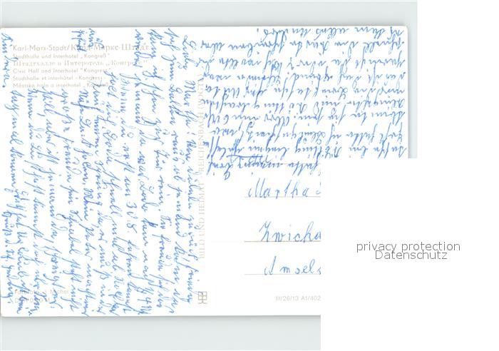 72134652 alte Postkarte Karl-Marx-Stadt CHEMNITZ Stadthalle und Interhotel Kongress postalisch gelaufen Erhaltung siehe scans KatCode: 11110014161000