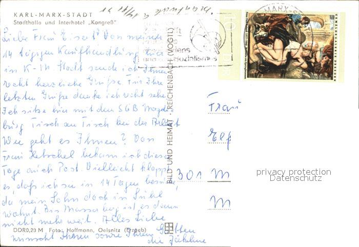 72041416 alte Postkarte Karl-Marx-Stadt CHEMNITZ Stadthalle und Interhotel Kongress postalisch gelaufen Erhaltung siehe scans KatCode: 11110014161000