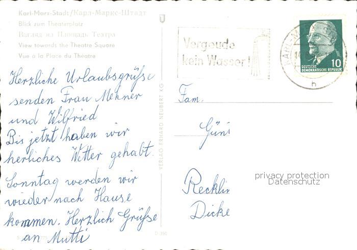 72111707 alte Postkarte Karl-Marx-Stadt CHEMNITZ Theaterplatz postalisch gelaufen Erhaltung siehe scans KatCode: 11110014161000