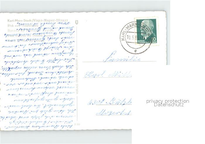 72136278 alte Postkarte Karl-Marx-Stadt CHEMNITZ Theaterplatz Kirche postalisch gelaufen Erhaltung siehe scans KatCode: 11110014161000