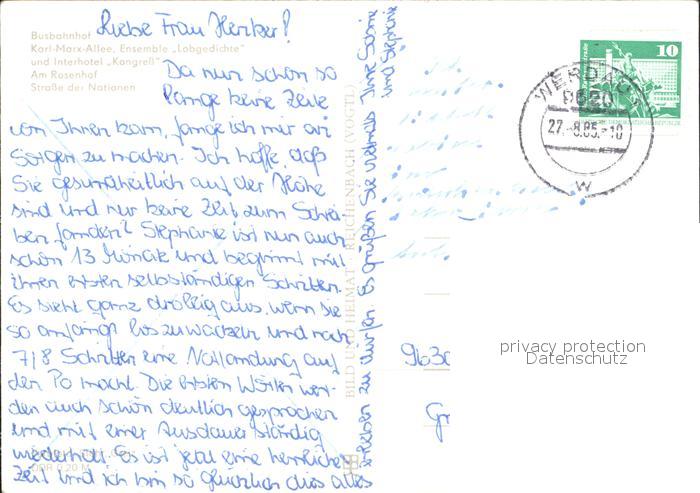 72371986 alte Postkarte Karl-Marx-Stadt Ensemble Lobgedichte Interhotel Kongress Am Rosenhof Strasse der Nationen postalisch gelaufen Erhaltung siehe scans KatCode: 11110014161000