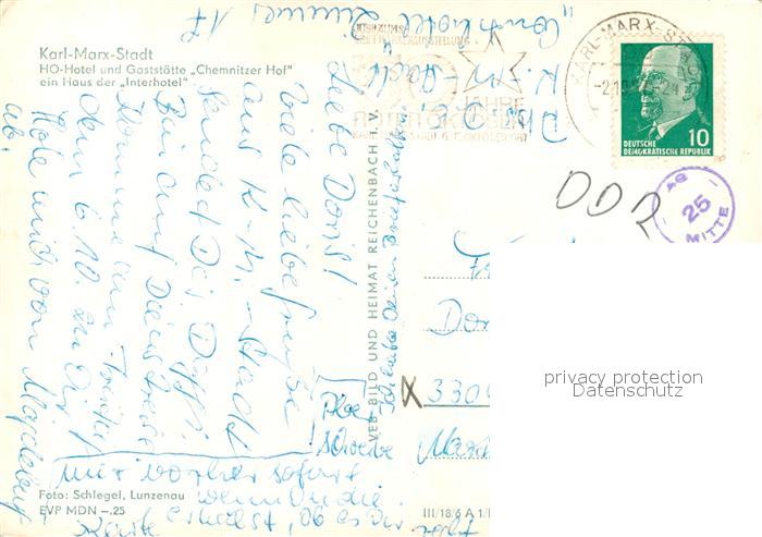 73102775 alte Postkarte Karl-Marx-Stadt HO Hotel Gaststaette Chemnitzer Hof Haus der Interhotel postalisch gelaufen Erhaltung siehe scans [KathaD81] KatCode: 11110014161000