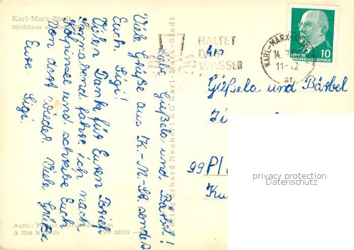 73593394 alte Postkarte Karl-Marx-Stadt Hochhaus am Schlossteich postalisch gelaufen Erhaltung siehe scans [FriedD77] KatCode: 11110014161000